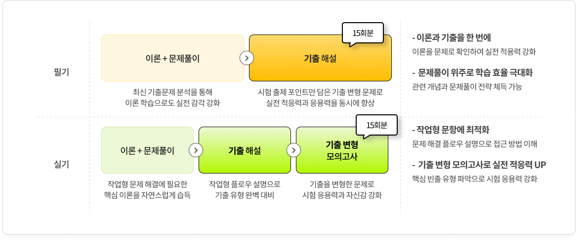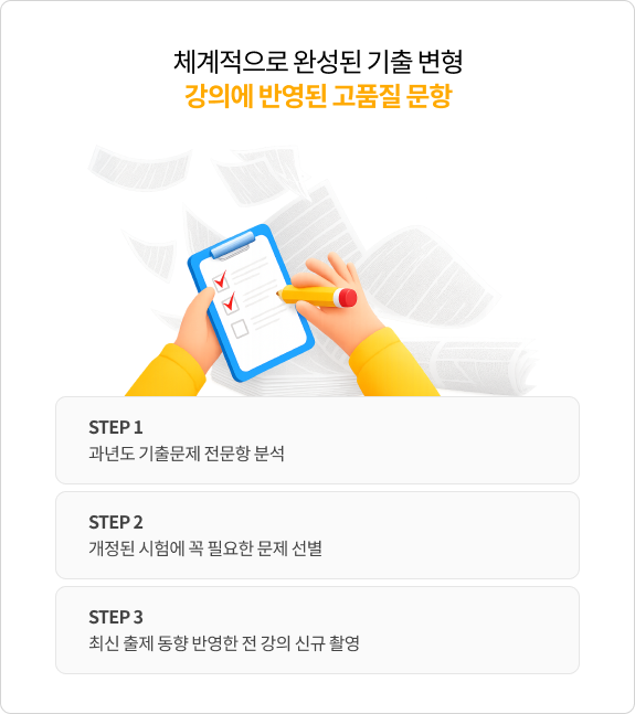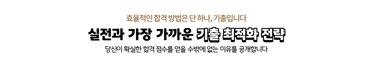 실전과 가장 가까운 기출 최적화 전략으로 합격 자신감 완성하고, 빠른 합격으로 증명합니다