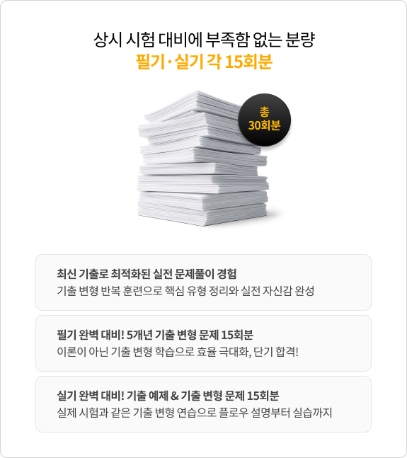 총 30회분의 압도적인 기출문제 분량 3단계 프로세스로 완성한 고품질 기출 변형