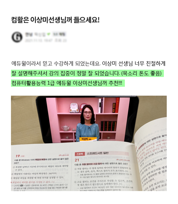기출 92회분 변형 경험+해설강의 경력 이상미 교수의 컴활 합격 노하우